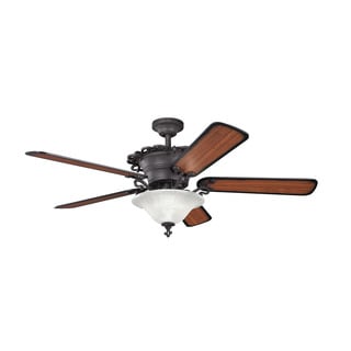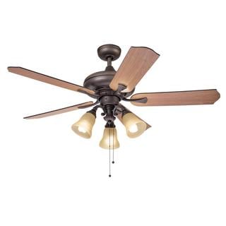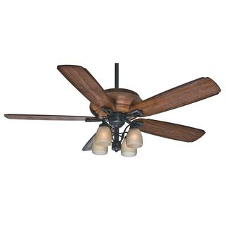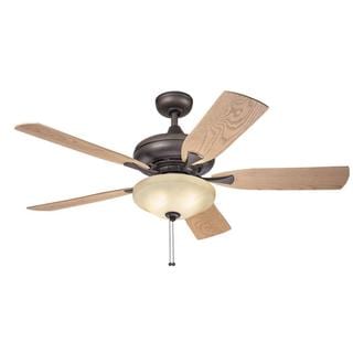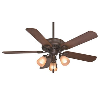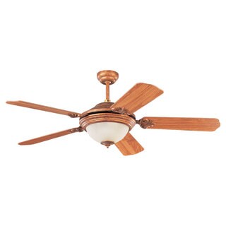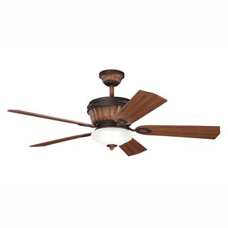 This 52 inch ceiling fan features a bronze finish and cherry colored carved wood blades that will compliment many and transitional decors. Includes a 3-light kit with tea stained glass that softens the light and completes the look.| Caractéristiques | |