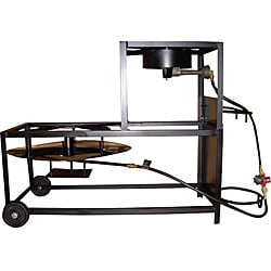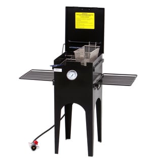 This outdoor cooking unit from King Kooker features two rectangular fry pans fueled by two 54,000-BTU cast burners. This outdoor cooking appliance includes LP hoses and a regulator with type 1 connector.With durable construction of aluminum and steel, this frying cart package is a high-quality way to prepare a variety of fried foods. The portable outdoor propane cart makes this unit easy to transport to any venue. Three frying baskets provide room to prepare multiple dishes at once or serve a crowd.