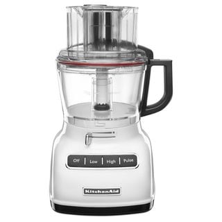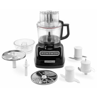 The KitchenAid 9-cup food processor with ExactSlice system slices from thick to thin with one slide of the lever. This model has a 9-cup work bowl with 2-in-1 feed tube and pusher for continuous processing. The 9-cup capacity is ideal for many home cooking needs, allowing you to chop, mix, slice and shred with ease, offering multiple tools in one appliance.- Brand: KitchenAid