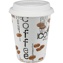 A real eye-catcher, the Script Collage Travel Mugs have an allover, coffee-themed, jumbled letter motif in contemporary color. Colored silicone lid prevents spilling or splashing.- Color/pattern: Travel Mugs