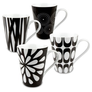 SaleKonitz 'Cafe Latte Writing' Black/ White 12-ounce Cups (Set of 4)