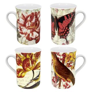 SaleKonitz 'Les Fleurs Chez' 12-ounce Assorted Design Mugs (Set of 4)