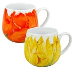 SaleKonitz Poppy and Sunflower Blossoms Snuggle Mugs (Set of 2)