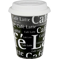 SaleKonitz 'Cafe Latte Writing' Black/ White 12-ounce Cups (Set of 4)