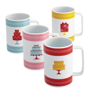 SaleCake Boss Serveware 4-piece 'Mini Cakes' Print Porcelain Mug Set