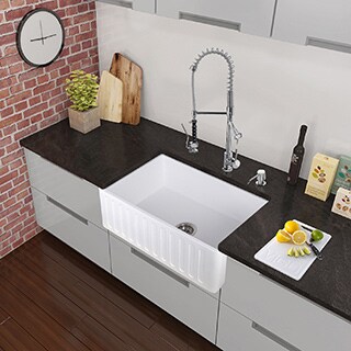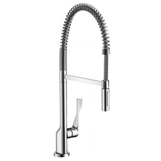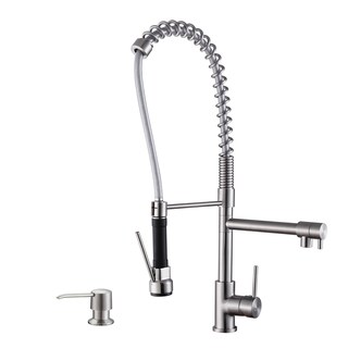 Make a bold statement with the Kraus Kitchen Faucet Combo, featuring the Mateoâ„¢ Series. The Single Lever Commercial Style Faucet has an ultramodern high-arch open-coil design, for a professional look in the home kitchen. The clean, sleek silhouette creates maximum visual impact and adds a stylish industrial touch to your sink. For enhanced functionality, the sprayhead is ergonomically designed with a comfortable grip. A single button allows you to instantly switch between aerated stream and powerful spray. The coordinating Bar/Prep Faucet features a solid base and clean lines, for a sophisticated modern look with style continuity. The streamlined spout swivels 360° for added flexibility, providing the ability to reach every part of the sink. All faucets in the Mateoâ„¢ series are designed with a QuickDock mounting assembly, for exceptionally easy top mount installation. This innovative feature allows you to install the faucet from above the counter, eliminating the need to secure it underneath the sink. These faucets are manufactured with top-quality components in order to ensure lasting value and superior performance. Technology highlights include an ultra-durable Kerox ceramic cartridge and a best-in-industry Neoperl aerator. This combo comes with a matching soap dispenser that is refillable from above, and swivels 360° for maximum reach. All Kraus products are protected by a Limited Lifetime Warranty to ensure your lasting satisfaction. Outfit your kitchen in seamless style with the Kitchen Faucet Combo, and experience Kraus Quality at its very best.| Caractéristiques | |