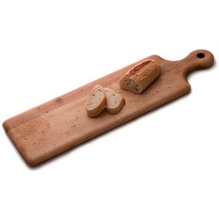 The Horizon is a paddle-shaped cutting board made of North American black walnut with a contoured handle for a sturdy, comfortable grip. The handle has a large hanging hole at its end. Because the board is double-sided, you can use one side for chopping and the other side as a serving tra- Type: Cutting Board