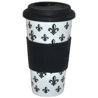 SaleKonitz Black and White Cafe Latte Large Travel Mugs (Set of 2)