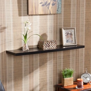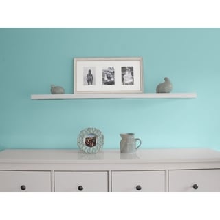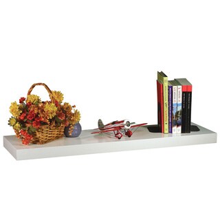 Organize your home and free countertops from clutter with this large 60 inch long slimline white floating decorative wall shelf. Contemporary in style, this functional wall shelf offers attractive storage space that is perfect for many rooms in your home including laundry rooms, mud rooms, kitchens, children's bedrooms, or play rooms. Buy two or three together to fill an empty wall space and display functional items like towels, laundry soap, kitchen items, or children's stuffed animals. This functional black wall shelf compliments any decor and shows no visible support, making it appear to be floating. All hardware and instructions needed are included. Durable MDF construction that meets CARB standards and it's easy to install. Installs with a hidden metal bracket allowing greater weight capacity. Dimensions: 1.25 inches high x 60 inches wide x 7.5 inches deep.- Accent Type: Decorative Shelves