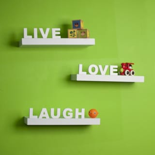 SaleWhite Laminate 'Live, Love, Laugh' Inspirational Wall Shelves (Set of 3)