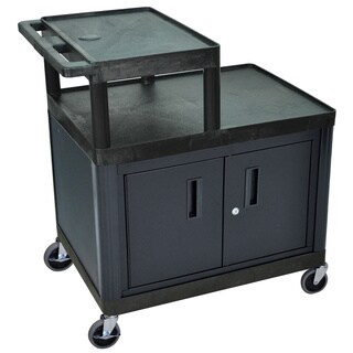 This Luxor 3-shelf cart features polyethelene shelves and a middle tub along with a shelf with flat top and bottom shelves. The shelves will not scratch, dent rust or stain.- Color: Black
