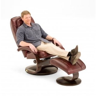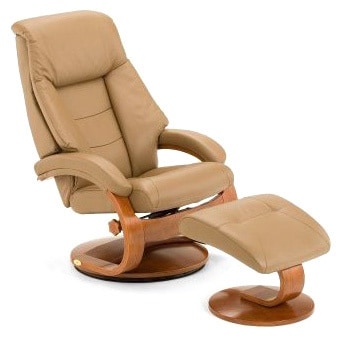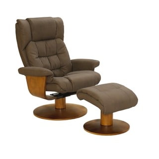 This comfortable swivel recliner from Mandel-S provides therapeutic support for the lumbar section of your back. The chair lets you recline with your choice of several adjustable levels, and the full 360-degree swivel helps you stay connected with everyone in the room. The matching ottoman supplies a plush place to put up your feet and relax.- 360 degree swivel
