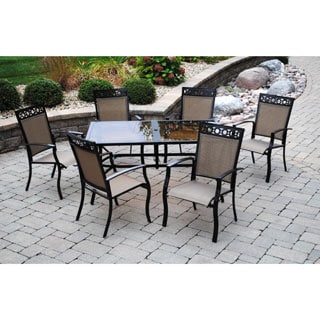 SaleMadison Bay 6-person Sling Patio Dining Set with Stacking Chairs and Cast Aluminum Table
