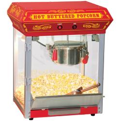 Get old-fashioned carnival style popcorn right at home with this popcorn trolley. It features a 2.5 ounce stainless steel kettle with a built in stirring mechanism. Included are a measuring cup and spoon.| Caractéristiques | |