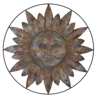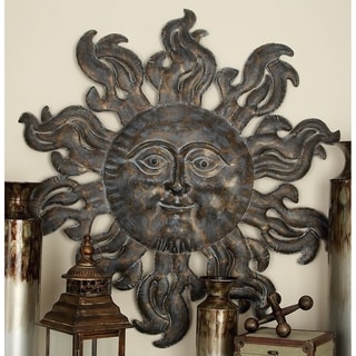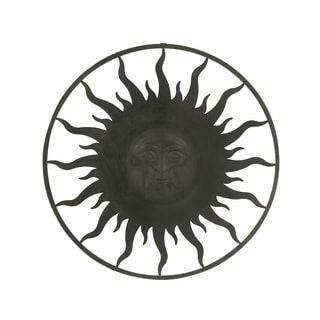 Sale36-inch Diameter Global Inspired Distressed Bronze Textured Iron Celestial Sun Wall Sculpture