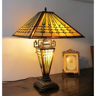 SaleChloe Tiffany Style Mission Design Dark Bronze Double Lit 2+1-light Table Lamp