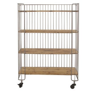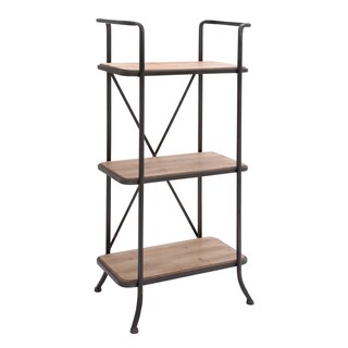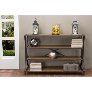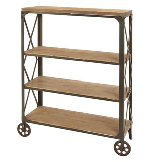 Stash your books, souvenirs and more on this sturdy wood and iron storage shelf. Offering a simple, minimalist design, it looks right at home in a modern or rustically decorated space. The X-shaped reinforcement on the back of the brown storage shelf adds stability, so you don't have to worry about stacking heavy books or other items on the four shelves.- Colors/ finish: brown
