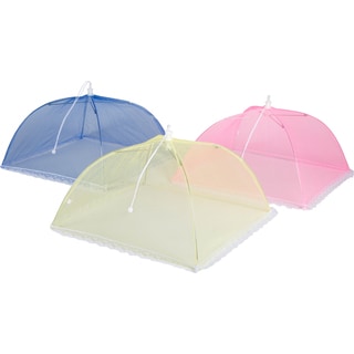 Keep flies, bees and other bugs away from your food with this Mr. BBQ cabana-style food tent kit. Bring this seven-piece tent kit with you to family BBQs, picnics and other outdoor events, and use the tents to cover buffet trays, desert platters or individual plates. Cover multiple items or large platters with the 17-inch cabana-style cover, and use one of the four 12-inch covers to protect individual plates of food.Place the sturdy tent directly over your food on sunny days to shield your cuisine from hot sun rays that could overheat or melt your dish. The mesh material ensures a smooth air circulation and gives you a clear view of the items inside the tent.