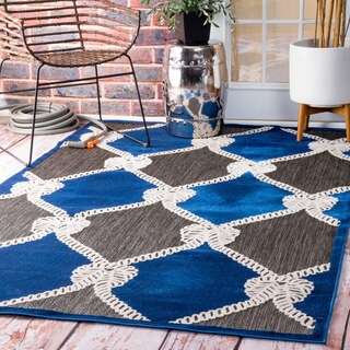 SalenuLOOM Indoor/ Outdoor Nautical Ropes Porch Blue Rug (8' x 10')