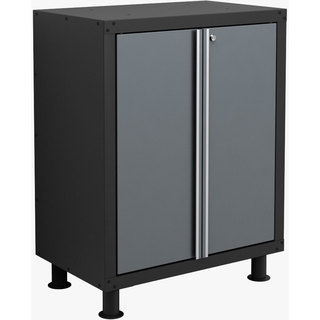 The NewAge Pro Series 2-door Base Cabinet provides resilient, powerful storage in your garage workshop. With a contemporary design, this durable garage storage cabinet includes a full-width adjustable pull-out steel shelf on smooth ball-bearings slides with cushioned liner, and steel pegboard sides panels on its doors for maximum tool storage.| Caractéristiques | |