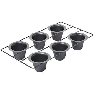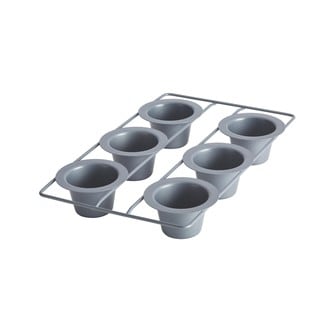 The Nordic Ware Grand Popover Pan makes 6 tall 3/4 cup popovers. The aluminum structure of the Nordicware popover pan evenly bakes your popovers or muffins and the non-stick interior helps your popovers come out of the pan easily, holding their unique shape.- It is advised that you hand wash your Nordicware Popover pan and do not use metal utensils.