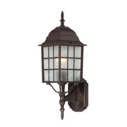 The Adams 17-inch post fixture by Nuvo is beautifully finished in rustic bronze. This lighting fixture features frosted glass which mutes the sharp glare put forth by incandescent bulbs, creating soft, even and welcoming illumination.- Setting: Outdoor
