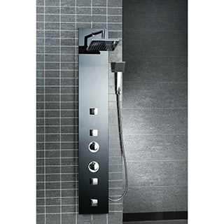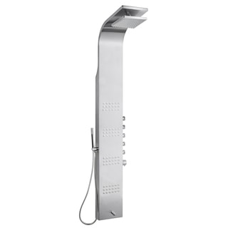 The OSC-016 shower column defines itself with a strong, sleek appearance and ultimate versatility. The tempered glass and stainless steel main panel features four body jets that are controlled by a three function water diverter. The handheld shower mimics the larger integrated rain style shower head and features a long extension for optimal use. The entire unit is easy to install and features a thermostatic anti-scald safety mechanism. br>| Caractéristiques | |