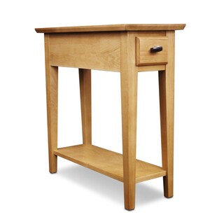 So Functional and Cute! This table is so great. It was very easy to assemble, screw on the legs,attach shelf and insert drawer. DONE! The drawer is 16 1/4" w x 9" l x 21/4" deep so it will hold a lot. My only complaint is that the drawer does not go in and out smoothly. It makes a lot of noise. wood against wood I guess. I use it as a bedside table and a place to lay my laptop. The shelf under is where I have my printer. If I had the room I would order another one!