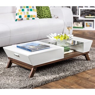 SaleFurniture of America Kress Glass Insert Mid-century Style Coffee Table