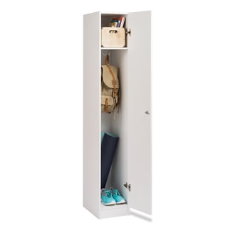 The Carrboro cabinet helps to race away the mess with bright storage. The locker opens to reveal a shelf for organization with a gunmetal finish and red door. Designed to pair with the Carrboro loft bed, but also can be used as a stand-alone statement piece in your youth bedroom. Assembly required.| Caractéristiques | |