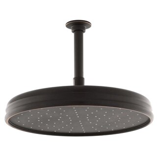 Transform your shower into a spa retreat with this oil-rubbed showerhead that comes with a 17-inch ceiling support for easy installation. This sleek bronze showerhead diffuses a rainfall of water for your morning shower, and the fixture comes with all the mounting hardware required for installation. The shower's solid-brass construction ensures long-lived durability and dependable performance. Click here to view additional information about this itemUpdate your bathroom decor with this ceiling mount showerhead. This Victorian raindrop showerhead is crafted of brass for durability and reliability.