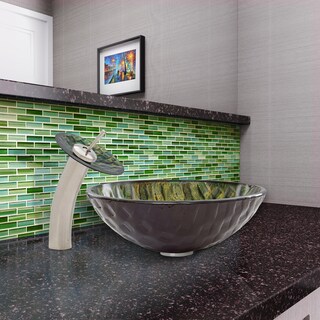 SaleVIGO Amazonia Glass Vessel Sink and Waterfall Faucet Set in Brushed Nickel Finish