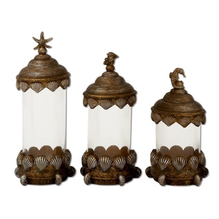 SaleCasa Cortes Baroque Fleur De Lis 3-piece Gold Finish Glass Canister Set