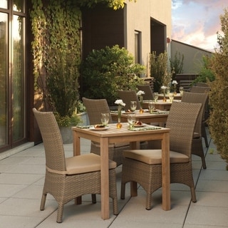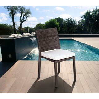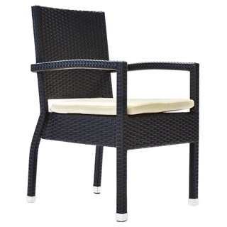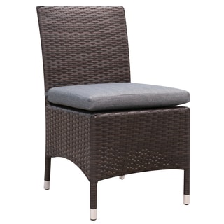 Furnish your outdoor patio table with this weather-resistant wicker dining chair made with a powder coated aluminum frame and hand-woven weaving material. The simple design of this sturdy, comfortable outdoor dining chair easily complements any outdoor dining decor. This chair includes a weather-resistant cushion that provides optimal support, so you relax outside for hours.Tough all-weather wicker is woven modern box style for a substantial, comfortable look in this outdoor Boca chair. The square, armless seat and high back make this chair a great choice for outdoor dining, or put a couple on your porch for watching rainy days. The chair and its included cushion are UV and weather resistant for longevity.