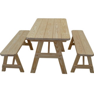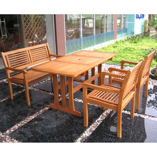Enjoy your meal on the patio or near the garden with this outdoor wood English garden dining set. The natural finish helps this garden set blend right into the outdoor scenery, and the material is weather- and insect-resistant. The set includes an outdoor dining table, two chairs and a bench, and each piece is light-weight enough to facilitate changing the placement at your leisure.