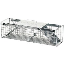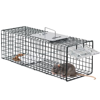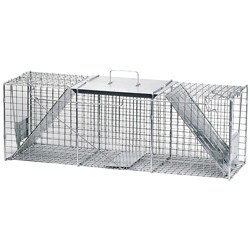 Take care of your pest problem the only way that doesn't harm the cute little critters! Even though your pest might be a bad little critter, he probably has someone he calls family. That is why this live animal trap is a humane way to stop little critters from creating a disturbance day in and day out at your house. It's easy to use and comes fully assembled so all you have to do is set the bait and wait for your greedy little trickster to come to roost. There is also a separate door for release once you get that troublemaker back into the wild where he belongs. Say goodbye once and for all to holes in your trash, lawn, and garden with this simple solution. Perfect for trapping: rats, weasels, chipmunks, rabbits, mink, squirrels, muskrats, ferrets, skunks (watch out for their spray!), woodchucks, porcupines, stray cats, opossums, raccoons, and bobcats.- Quantity: One (1) animal trap