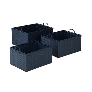 Honey-Can-Do STO-03736 Paper Rope Large Basket with Liner, Blue. Keep clutter at bay with our large paper rope basket with liner. The recycled and repurposed parchment is formed into strap-like fibers, making the basket durable and eco-friendly. The wire frame adds to its strength, and the built-in carrying handles make it easy to transport. Measuring 23.5" L x 15.75" W x 6.5" H, this basket provides endless storage options for any room of the house and its neutral color matches any decor. The tan liner adds a pop of color in an earthy tone. Includes removable lid with cut-out handle. Coordinates with other paper rope products from Honey-Can-Do.| Caractéristiques | |