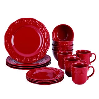 SaleBonJour Dinnerware Spiceberry 16-piece Holiday Red Stoneware Dinnerware Set