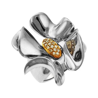 SaleSonia Bitton 14k Gold/Silver Designer Diamond Flower Ring (H-I, SI1-SI2)