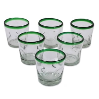 SaleSet of 6 Handcrafted Blown Glass 'Jade Flair' Juice Glasses (Mexico)