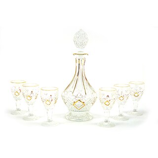 SaleComplete Seven-Piece Goldtone Trim Bottle and Glass Liquor Set