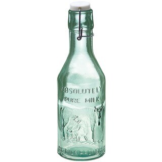SaleSet of 4 Recycled Glass 'Pure Milk' Bottles with Clamps