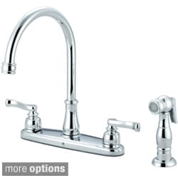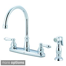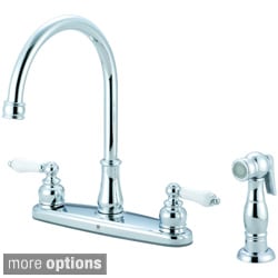 This Brentwood Series kitchen faucet features a traditional style with two white porcelain cross handles and a handy sidesprayer. This faucet comes in either a polished chrome or a brushed nickel finish to complement any kitchen decor.