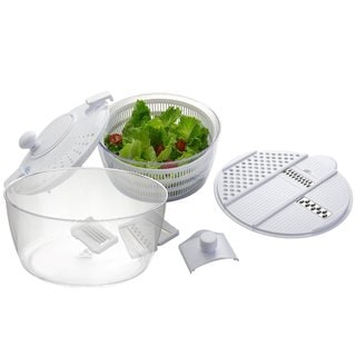 Discover a fast, efficient, affordable and chic way to maintain a healthy routine and improve your diet. Making a salad has never been so quick, easy and fun as it is with this 5-quart salad spinner. An ergonomic side hand crank spins your arugula, spinach, cabbage and other vegetables to remove excess water after washing.| Caractéristiques | |
