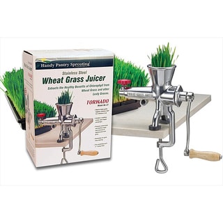 Weston Cast Iron Wheatgrass Juicer... Superb juice extraction for wheatgrass, soft fruits and soft vegetables! Heavy-duty construction for a lifetime of use; Fine 1 mm screen. Ergonomically designed crank handle turns effortlessly; Clamp on style easily attaches to any countertop up to 1.5 inches; Rubber mount pads protect the most delicate work surfaces; Adjustable pulp control; Fully disassembles for quick and easy clean-up.| Caractéristiques | |