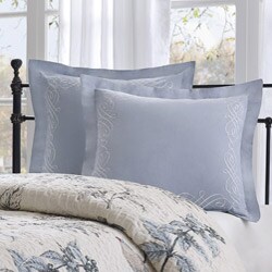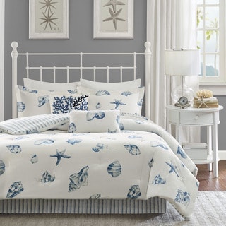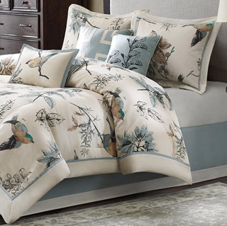 Lovely drapes. They do match the Madison Park "Pierce" bedding group that I also purchased. The only difference is that these drapes are more of a linen fabric and the bedding is like a cotton twill. In any case, they do match and hang nicely. I wish the big O would allow for photo uploads like Amazon because I would post a photo of how they look together. I did not purchase the matching valance because I have a solid brown window cornice that was built to match my previous bedding. I think that the custom cornice looks more expensive/chic than the valance. I don't use the included ties backs either. To me personally, something about that blue and brown stripe, cheapens the look. Overall, I am pleased with this purchase.
