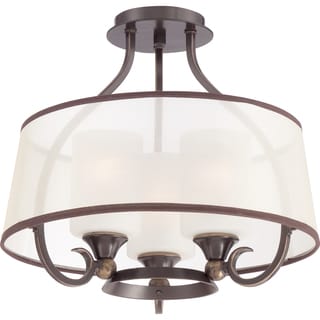 SaleGemini Bronze and Khaki Fabric Shade 3-Light Semi Flush Fixture