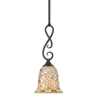 The lovely mosaic design on the glass shades is made from genuine pen shell, bringing the beauty of nature into your home. The playful curls of the metal body add a whimsical element to the overall style.- Setting: Indoor