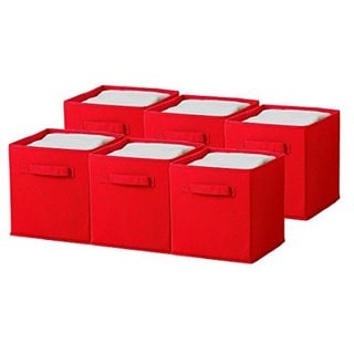 Set of 5 red non-woven storage bins. Includes three small bins measuring 8 inches wide x 9 inches deep x 6.5 inches high and two larger bins measuring 13 inches wide x 9 inches deep x 6.5 inches high .| Caractéristiques | |