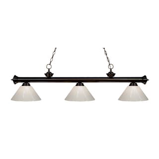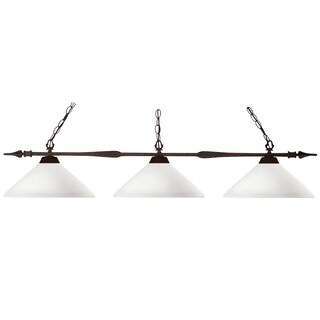 Traditional charm defines this three light fixture. The bar is finished in oil rubbed bronze, and is paired beautifully with three white swirl glass shades, for a warm and inviting glow.| Caractéristiques | |